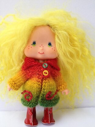 Cute as can be cozy roll neck coat for your vintage Strawberry Shortcake doll. Worked in fine sock yarn it comes out super cute and perfect for keeping her warm in the winter!