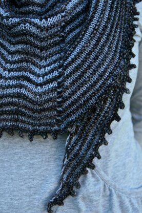 Gauge: 24 sts and 32 rows in stockinette (gauge isn’t super critical, as this is a shawl) Needles: US 4 (3.5 mm) circular needle (24” or longer) OR size needed to get YOU the gauge YOU want for this shawl. Yarn: Approximately 325 yards Color A. Approximately 275 yards Color B. Samples shown in Hazel Knits Artisan Sock yarn in Chocolatier (Color A) and Terrywinkle (Color B) and in Hazel Knits Artisan Sock yarn in Sassafrass (Color A) and Nickel (Color B). Finished measurements: 75” wide, 15” deep at middle. Notions: stitch markers, darning needle. Skill level: Advanced beginner.