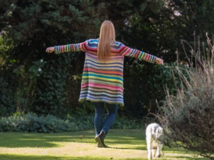Diese federleichte Strickjacke mit eingestrickten Taschen kann im Sommer wie im Winter getragen werden.