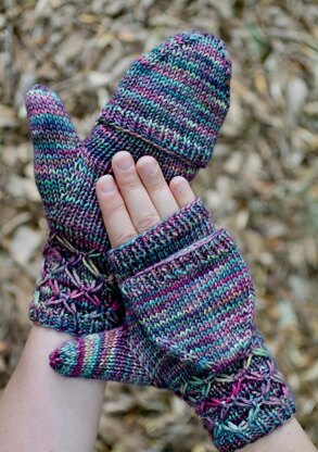 These convertible mitts are both pretty and practical—flip the mitten top down for fingerless mitts when dexterity is needed, and then flip the top back up to keep the whole hand toasty.