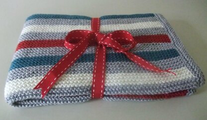 I originally designed this blanket for my grandson Theo for use in his car seat. It’s small enough to keep a little one cosy but not enough blanket to be forever trailing everywhere as well as being bulky. The stripes can be knit in all manner of colour combinations to suit little baby boys and girls and an ideal make in unisex colours if the expected baby isn’t known to be a boy or girl. It’s simple to make bigger for a crib, cot or lap blanket but be sure to adjust the amount of yarn you have.  This is a great pattern for a beginner or novice to do or for an easy television knit too.