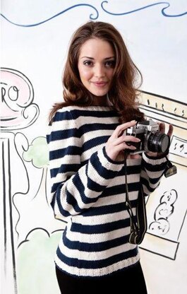 This is a pattern for a Striped Breton Jumper, originally published in Knitting magazine in a French themed issue. It is a simple garment in stocking stitch and rib in stripes. Photo Laurel Guilfoyle for Knitting magazine.
