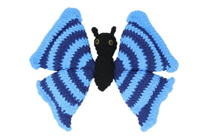 This crochet pattern for the Striped Butterfly by Sarah Quillen creates a soft lovable 16" stuffed animal. The terms are US. The pattern includes an “easy to follow” layout with many pictures for reference. The pattern is designed for blanket yarn but can also be done in worsted weight yarn with a size F hook and 10mm eyes to create a much smaller butterfly. I've chosen some colors that Love Crafts has that I think would look good with this pattern, but be creative, find your favorite colors and have fun.