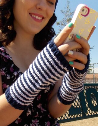 A lovely lady who worked up my Striped Knit Hat pattern requested a pair of matching fingerless gloves to wear as a set. The Striped Fingerless Gloves pattern paired with Berroco Comfort yarn is perfect for early spring temps.