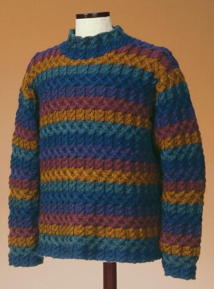 This pullover is worked from the bottom up in pieces, then sewn together.