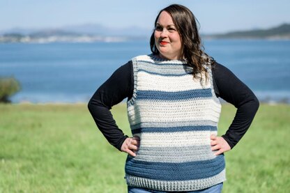 Great crochet vest pattern in sizes XS to 5XL. It’s a striped sweater vest pattern, but can easily be made in one solid color as well.