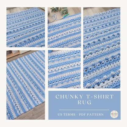 DESCRIPTION: This is a pattern for the Stripy Chunky Texture T-Shirt Yarn Rug and its the perfect rug to finish a room off!!