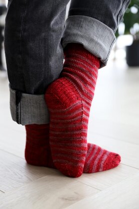 This is a basic pattern for cuff-down striped socks. The socks feature a French heel and a star toe.