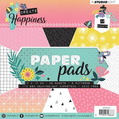 Studio Light Paper Pad 6"X6" 36/Pkg - Create Happiness, 9 Designs/4 Each
