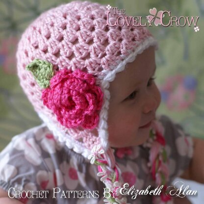You are looking at a crochet pattern for precious little shell earflap beanie. Rose pattern is included.