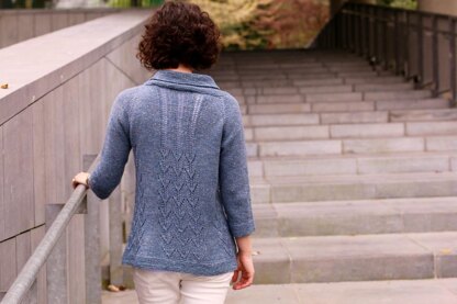 The soft draped collar, gentle undulating lace and flattering raglan shoulder shaping make this cardigan a great spring staple. It can be worn as an everyday about town cardigan or as a finishing touch for over that spring dress.