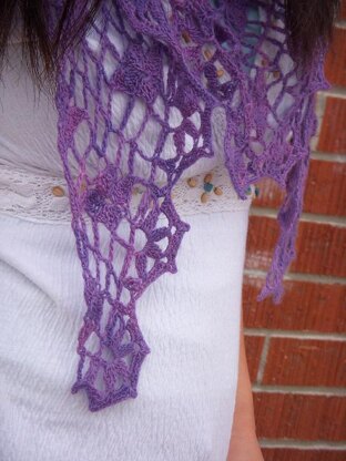 Worked from point-to-point, Sumire's Shawl uses the most of a skein of lace yarn. This shawl takes the concepts from [Geoui][1] and adds some complexity, creating a lovely shawl that is delicate and beautiful. The shawl is named after the flowery patterns in the body and motifs; “sumire” means violet in Japanese.