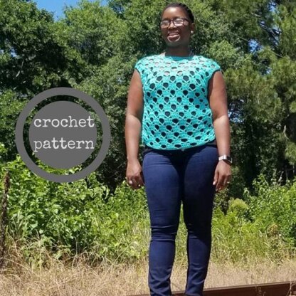This is a quick weekend pattern. The front lacy design is easy to follow even for experienced beginners. The whole top only requires the knowledge of double crochet and chains.