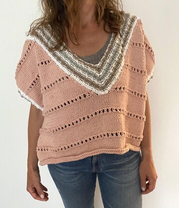 This is a simple summer knit that can be worn over anything. It looks good over a dress, swimsuit and can be worn as a tee over a tank. It's the perfect addition to your summer wardrobe.