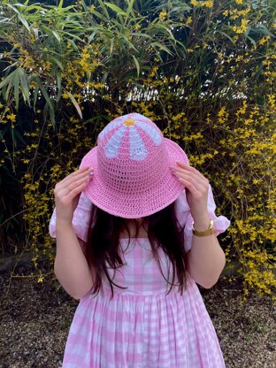 The perfect spring/ summer hat with a flower design on the top! Made using cotton yarn so it is breathable in warmer weather but will protect you from the sun. This pattern is for confident beginners, the most difficult skill is changing yarn colour. This pattern shows you how to make the hat with or without wire depending on which design you prefer. This pattern is made with scheepjes cahlista (this isn't available on lovecafts but I have linked a simial yarn that will work great too)
