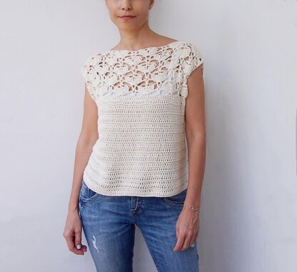 Enjoy the freshness of season with this elegant and trendy top. Wonderful and easy to make spring summer project. It’s easy to be resized if needed. Measurements: S/M - 43”(110cm) circumference, length 20 ½” (52cm) L/XL - 50 ½ ”(128cm) circumference, length 21 ½” (55cm)