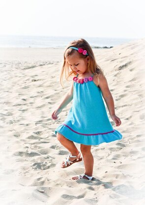The top section is meant to be fitted enough so not to be revealing while running, playing, jumping or dancing, while the skirt has lots of positive ease to be comfortable and airy at the same time. The dress is finished with a ruffle.