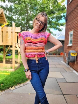 Hey everyone this is the Summer Pathways Tee. I designed this top as I wanted to something to go with my high waisted trousers, shorts and skirts. It also looks nice layered over a tank top. It is written as a crop top, but I will also provide instructions on how to make it longer if desired. It also has 2 - 4.5cm positive ease. The pattern is very detailed with tips for each row and photos to help guide you along the way.