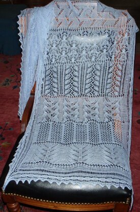 A lace sampler that was published in weekly installments over the Summer 2008 on the designers blog, http://badcatdesigns.blogspot.com/. Background information was posted during May, the pattern started in June finished on September 1st.