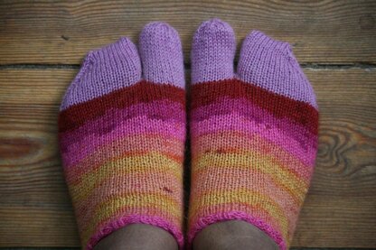 I love Summer; it has to be my favourite season. I love the feel of the sun on my skin, being able to walk on the grass bare foot, eating ice cream and drinking tea outside and I love the fact that I can sit under the oak tree and let it's leafy canopy shade me when the sun is at its peak. Another thing I love about Summer is that I can wear flip-flops with everything. I have noticed though that I need to pull on some socks as the evening progresses, but big thick wool socks are really not all that flattering with a pair of shorts or a short skirt. And you can't really wear socks with flip-flops! The solution? Tabi anklets of course! Here is my version of these Japanese invention.