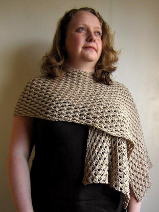 Designed as an alternative to a lightweight jacket, Summer Trellis is a rectangular shawl knitted using an eight-row repeat lace pattern.