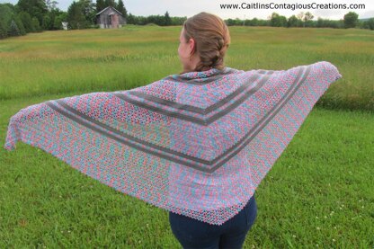 The Summer Wildflowers Triangle Shawl Crochet Pattern is named for the Summer Nights yarn line from Lion Brand used to make this light weight, lacy summer wrap. This fun summer shawl features areas of lacy pattern and a solid striped pattern. It is great for summer, or as a scarf in cooler weather.