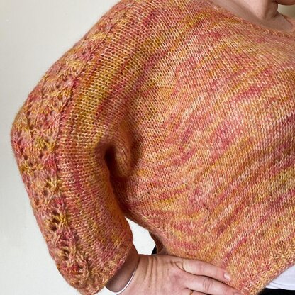 Summerdown is an oversized, lightweight, and drapey top with just a hint of lace; perfect for throwing on to add a bit of warmth on a summer evening.