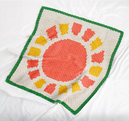 Bring warmth and brightness into your crochet with this cheerful Sun C2C Crochet Blanket Pattern, featuring a stylized sun surrounded by soft, nature-inspired shades of coral, gold, white, and green. Worked using the corner-to-corner (C2C) technique, this square blanket is perfect for nurseries, baby showers, or uplifting home décor.