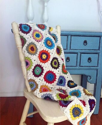 Simple throw using Sunburst Granny Block. Made from 8 ply (DK) pure wool.