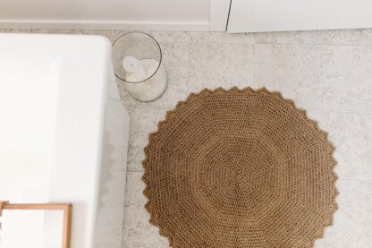 This is a very simple pattern that works up in the round without turning so you don't have a visible seam. It has a pretty border made of simple stitches, so this pattern is beginner friendly. Made of jute which you can find at your local hardware store or even the dollar store, jute is environmentally friendly and suitable for indoors or outdoors, which makes this a feel good and versatile piece.