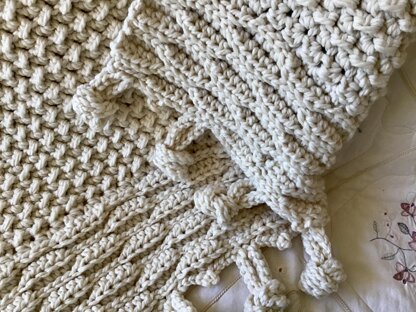 Design beyond design in the Sunday Best Baby Blanket. Heirloom quality. Completely reversible. Textured with raised stitches throughout. Perfect Christening, or birthday gift! Fits any decor in any room. Simple crochet stitches used. LION BRAND WOOL EASE YARN USED IN THIS PATTERN.