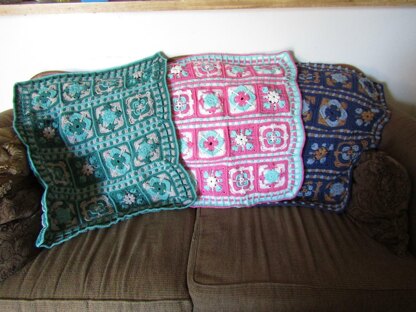 For a few years now I have been thinking about designing a baby blanket. One day I came up with four 6 inch squares that to me just fit together. After a bit of thinking and much crocheting trial & error I came up with this baby blanket.