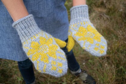 For many years my family and I lived in a 200 year old Maine farmhouse. I loved to plant sunflowers beside the back door, the brilliant yellow petals contrasted beautifully with the deep red clapboards and attracted all sorts of bird visitors. I loved the giant scale of them, making us feel tiny yet magical, like the wee folk! May these mitts remind you of their sunny blossoms even in the deep of winter.