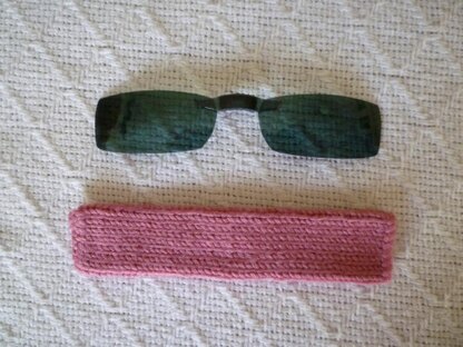 This handy little cover for your sunglass clip-on can be made to fit any size, just adjust the number of stitches. The model is 1¼” wide X 5” long (when measured flat).