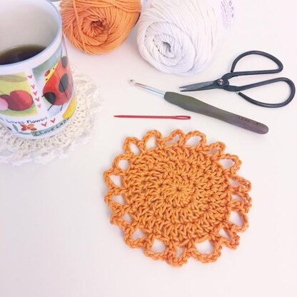 I was itching to crochet one morning after spending all weekend writing an assignment.  I had been wanting some coasters for my desk at work and this was the perfect 'fix' that I needed!  Quick, easy and super cute!  When I finished it reminded me of the sun and sunflowers so I named it the sunny coaster.  It really does work up quickly and works well in any colour.  So far I have an orange, cream, grey, pale pink and a blue one - all in different locations around my office and home.