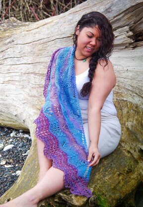 Deep blue water stretches to the brink of day as the first touches of vibrant orange sunshine touch the coast. Sunrise Over Sea is a worsted weight shawlette worked from the top down with a pretty feather and fan checkerboard pattern. Two different skeins of gently striping yarns are used for a transitioning color palette.