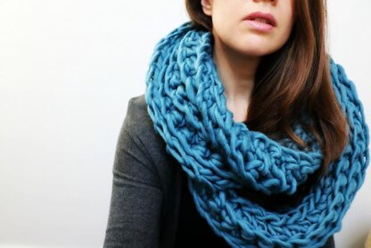 Crochet this soft and squishy infinity scarf. This is a great beginner project that works up in approximately 45 minutes! 25mm crochet hook used with 3 balls of Sugar Bush Yarns Chill. This luxury piece looks stunning in Beaufort Sea.