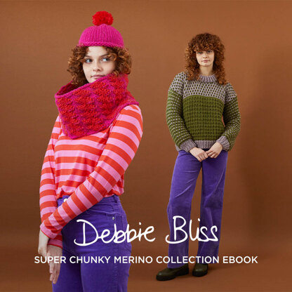 Find all the gorgeous Debbie Bliss Super Chunky Merino designs in one place with this fabulous Ebook! Knitting and crochet patterns include cosy cardigans and sumptuous sweaters, with a delicious hat and cowl, too. Debbie Bliss Super Chunky Merino is a beautifully soft merino in a super chunky weight, in 15 colours, bliss in a ball to knit or crochet!