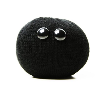 What you will need: 2 knitting needles (US3/3.25mm or as per tension advice), 30g black yarn (e.g. Stylecraft Special DK 1002 ‘Black’), 2 black toy safety eyes (24mm), 90g polyfil toy stuffing, 1 tapestry needle for finishing