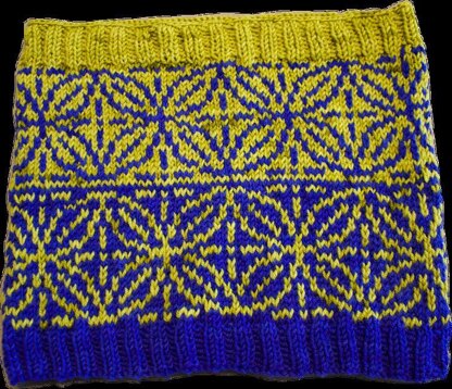 When I was drawing the pattern out I saw circles, but depending on how the cowl is sitting sometimes the stars stand out, and sometimes the circles stand out.
