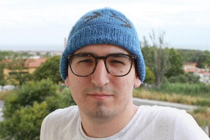 This beanie is knitted from the bottom up in a circle. We start by knitting the rib. We change to larger needles and continue knitting in a circle while knitting the chart as shown. We finish the fitting with decreases.