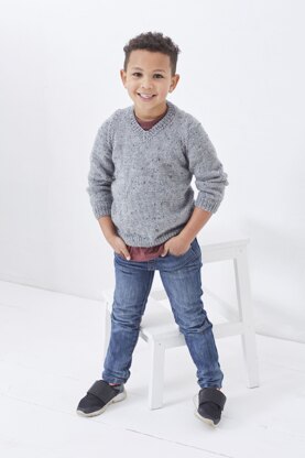 This adorable v-neck sweater and slipover pattern is made in Big Value DK and is perfect for the child in your life.