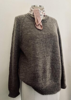 This classic raglan style sweater with a little twist, is worked seamless in the round from the top down to hemline. Sleeves are separated and finished in the round once body is completed. Neckline is knitted last in the round. i-Cord edges are worked for neckline, hemline and cuffs.