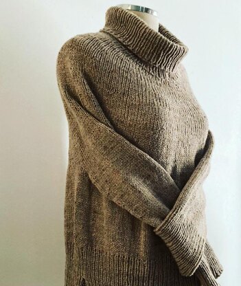 GARMENT CONSTRUCTION: The sweater is worked seamless from the top down. Collar/Turtleneck is worked first and a few short rows are added for a better fit before the rest of the garment is worked in the round to hemline. Hemline is split and worked flat. Sleeves are also worked in the round. Two options for neckline are suggested.