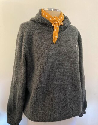 **ARMENT CONSTRUCTION:**This classic raglan style sweater with a little twist, is worked seamless in the round from the top down to hemline. Sleeves are separated underarm and finished in the round once body is completed. Neckline and Hood are knitted last. WHAT YOU