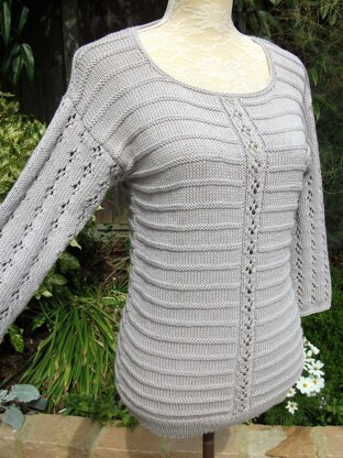 An elegant and exceedingly flattering sweater, with back and front featuring an alternating 2 row ridges of reverse stocking stitch.