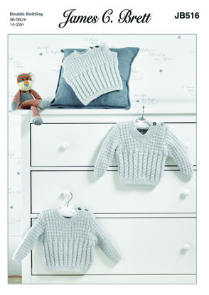 Sweaters & Slipover in James C. Brett Baby DK - 516 - Leaflet is a Intermediate Knitting pattern by James C. Brett, available as a Leaflet and includes instructions in English. Super fun to make, this pattern could be your next masterpiece!
