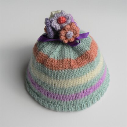 This little beanie was inspired by our recent addition to the family who has enjoyed lots of Summer days in the garden looking at & touching all the flowers.