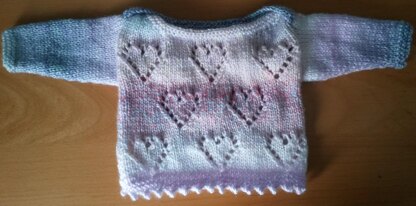Pretty heart design baby jumper in 3 sizes: New born, 0-6 months, 6-12 months.