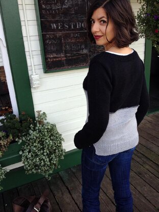 Sweet Jane is a simple pullover with a ton of style. It gets its modern styling from colour blocking, side slits and a step hem. Wear it with your favourite t-shirt and jeans for a casual weekend look or dress it up for work over an oxford and pencil skirt. Made from a warm, heathery wool/hemp blend that is lovely to knit, this sweater is a quick and satisfying project. So that the sweater keeps its shape nicely, the front and back are worked flat, then seamed at the sides and shoulders. Sleeves are picked up and worked from the top down, with a knitted-in sleeve cap worked using short rows.